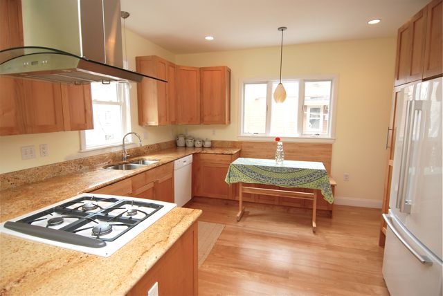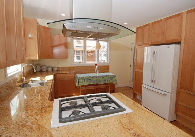 I used select red alder for my cabinet doors, and chose a simple shaker style. The kitchen is not huge but has about 190 cubic feet of storage in total, which is quite a lot. The IKEA boxes and hardware cost about $2000; the doors, includind side pannels, shipping, etc. cost about $4500. A great value, I think, for an incredible result.