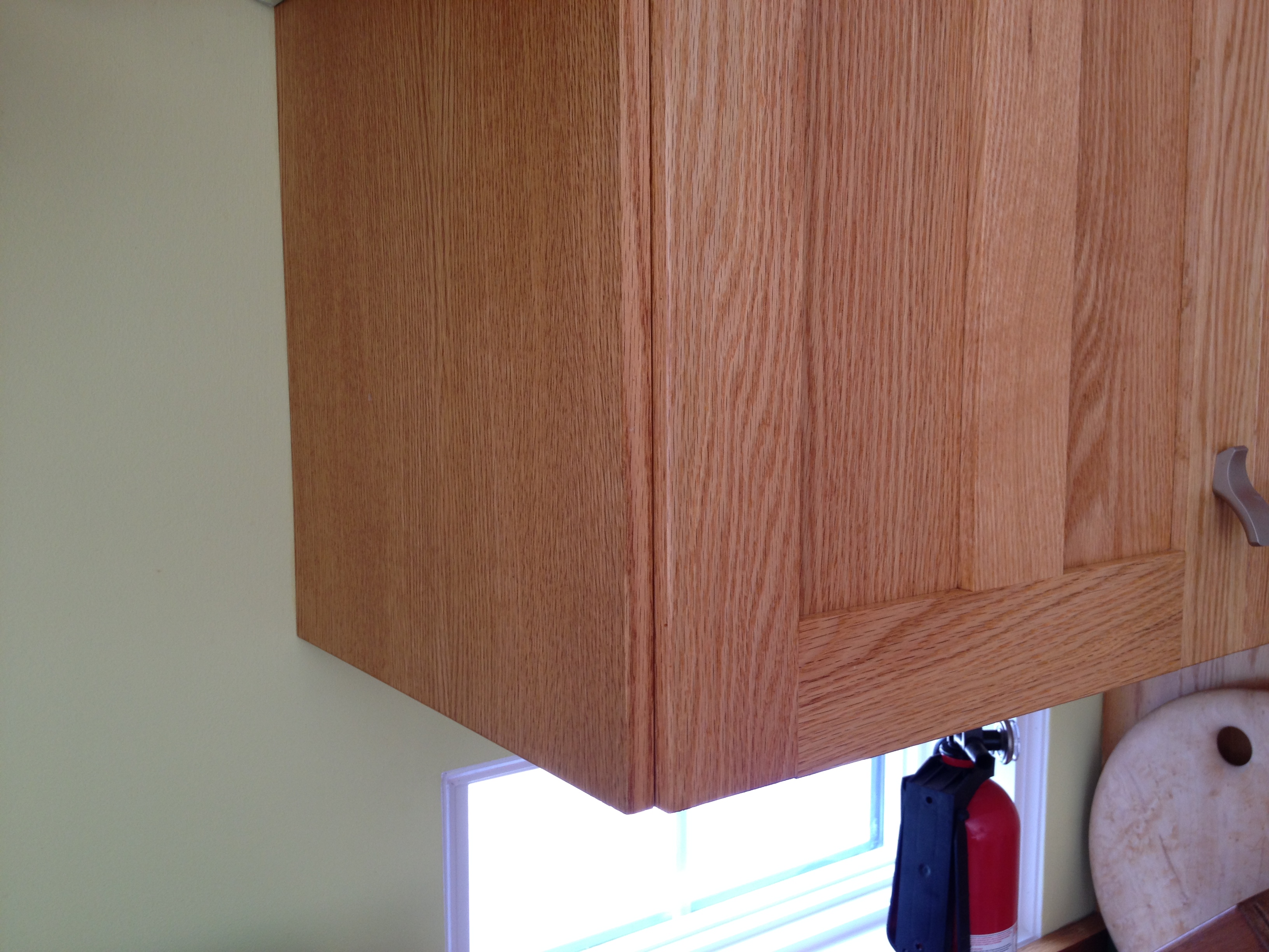 - I waited to order side pannels until all of my cabinets were installed and until the doors were on, because I wanted to take exact measurements on site. This added about 3 weeks to an otherwise very short/tight time line. Scherrs finishes the filler for you, so it’s better to have exact measurements, though limited cutting can be done on site and not show up. Also, side pannel sizes can be unpredictable given irregularities in walls and floors, so better to do these after installation, as we did, order to the largest dimension, and trim down on site.