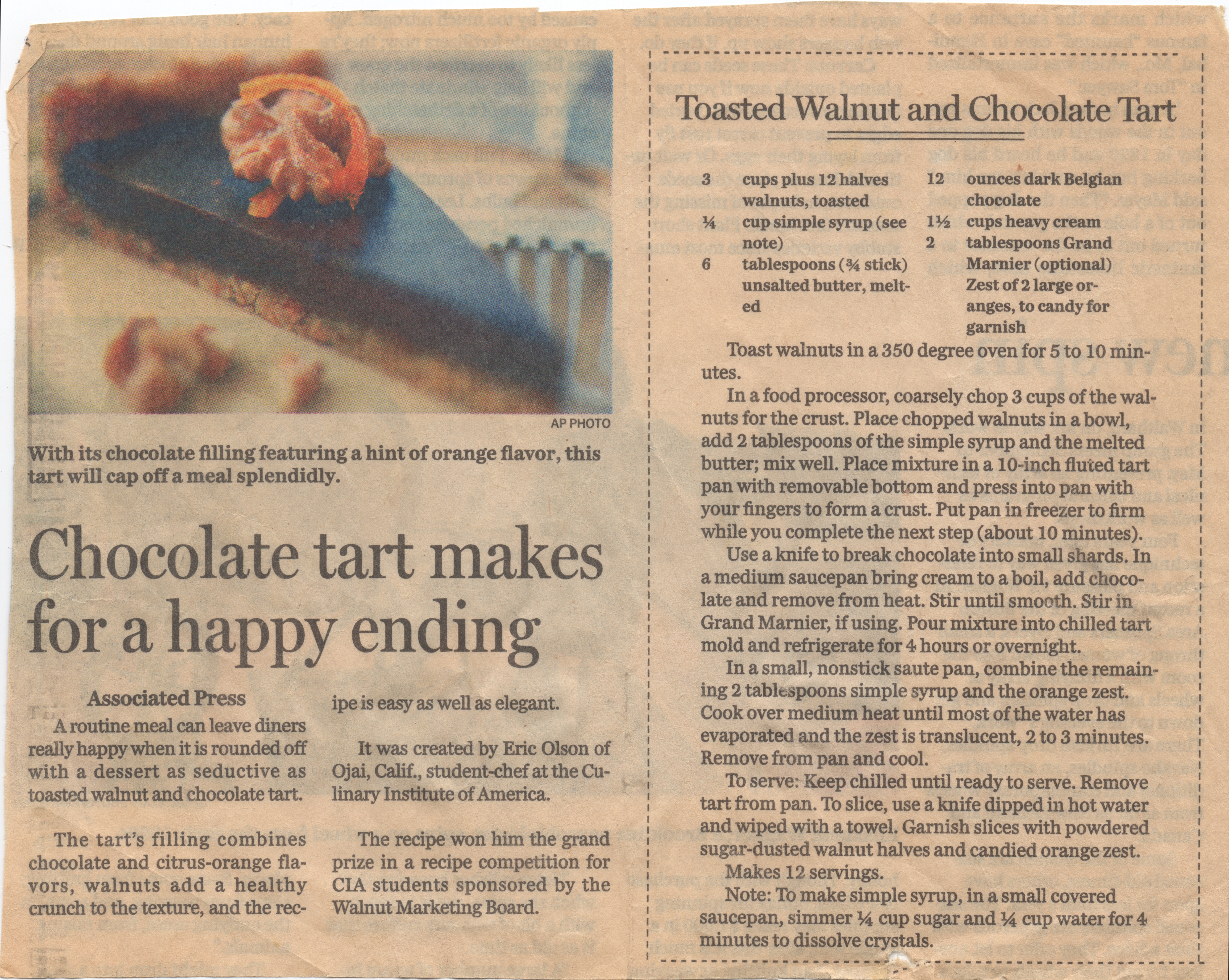 I cut out this recipe years ago and recently brought this pie to Thanksgiving. This recipe is nice in that it is simple, gluten-free, and can be adapted to be vegan as well (just substitute coconut oil for butter and coconut milk for heavy cream). This pie is rich — almost like fudge, and benefits from the use of high-quality semi-sweet chocolate (e.g. Caillebaut). Enjoy!