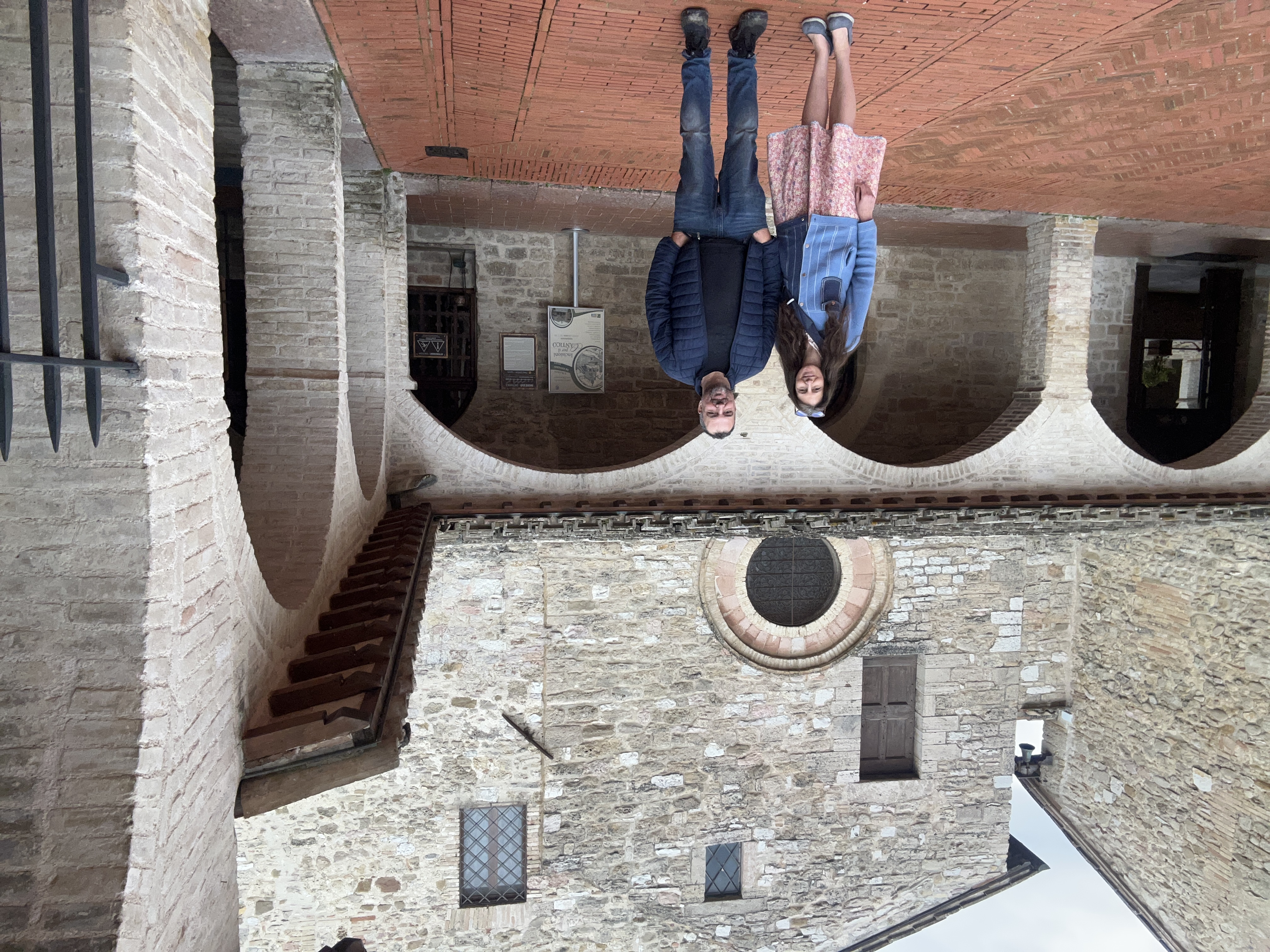 We drove to Gubbio as evening fell, searching for the "conversion scene" plaza and some alleys used for rainy begging scenes and the gift of bread from Clare. It took hours to get to Gubbio -- felt like we had to drive in a big circle to enter, but the medieval city felt cozy and wise and was very likely a location for the begging scene. The Piazze di Consili, however beautiful, was definitely not in the movie. The Hotel Gattapone was straight out of the 70s with friendly Alessio at the desk. My room had two shutters that looked out over the city -- I could peek my head out just like Clare did when Francisco was getting dragged to the town square. A gorgeous breakfast in the morning. We were the only guests that night. On our way out, we stumbled upon a Roman amphitheater in the valley below, and a small museum with Iron Age tools, further proof that people had been living here for thousands of years, protected, perhaps, by mountains and the hard-to-access location.